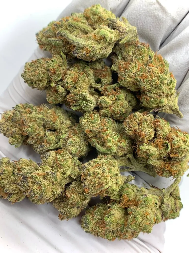 Strain Characteristics: THC Range: 30-35%%, offering potent effects for experienced users. Dense, frosty buds with a striking purple and green color palette. Compact, bushy growth structure ideal for indoor cultivation